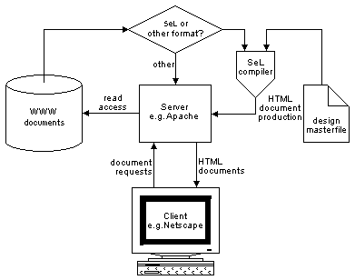 central design templates and lots of (content) documents. Once a WWW server runs SeL, minor or major redesign projects are done very easily without changing thousands of documents manually. Beyond