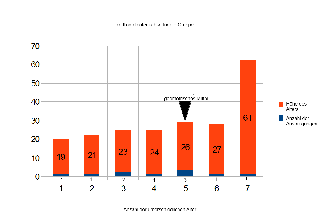 Der Median ist das Alter 25. Doch was würde passieren, wenn das 61 Jährige Männlein nicht zur Gruppe dazugebören würde? Finden Sie es herraus, indem Sie auf es klicken.