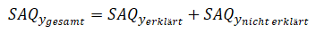 Ziel der linearen Regression ist die Varianz der abhängigen Variablen. Wie bereits an den Beispielen gezeigt, lässt sich diese Varianz selten einzig durch die unabhängige(n) Variable(n) erklären. Die Gesamtvarianz der abhängigen Variablen kann also wie folgt zerlegt werden: