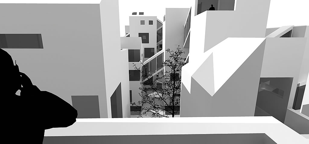 Um in den Wohnungen Offenheit und Privatsphäre in eine dialektische Spannung zu bringen und eine neue Nachbarschaft zu erzeugen, werden Brücken als Erschließung der einzelnen Räume vorgesehen.