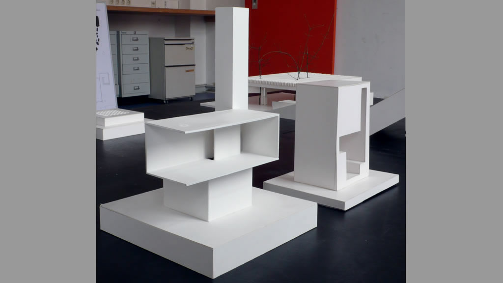 In Stegreifübungen setzten die Studierenden in Modellen elementare Raumkompositionen unter den Gesichtspunkten Addition und Subtraktion um.