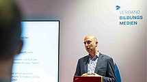 Dr. Stephan Schindler auf der Frankfurter Buchmesse im Rahmen des Forums Bildung das Forschungsprojekt DIRECTIONS