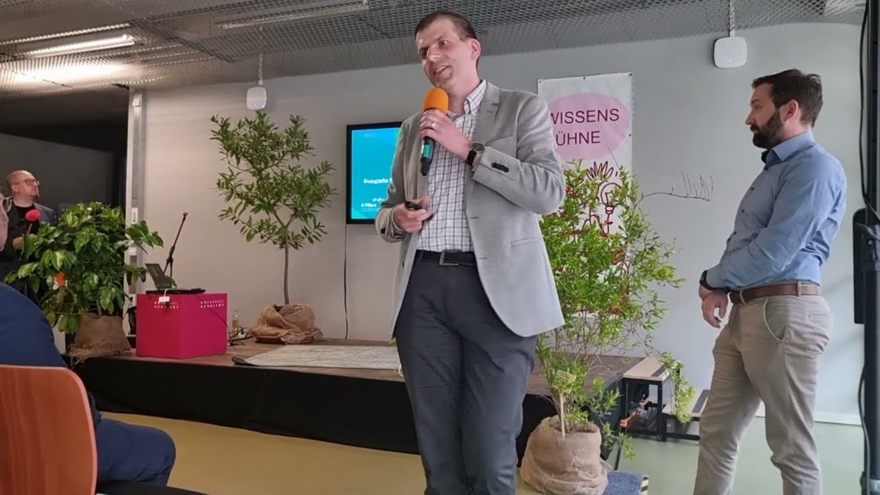 Direkt nach dem Besuch von Timon Gremmels, Hessischer Minister für Wissenschaft und Forschung, Kunst und Kultur, gaben Prof. Dr.-Ing. Thomas Niendorf und Dr.-Ing. Michael Hartung am Abend in einem kurzen Vortrag dem gespannten Publikum einen anschaulichen Einblick in die Welt der Werkstoffe und mit BiTWerk einen Ausblick auf ihre Zukunft: