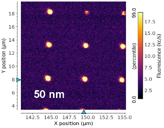 Diamant ist ein Material mit hervorragenden Eigenschaften aufgrund seiner Struktur und Zusammensetzung. Sein kubisch-flächenzentriertes Kristallgitter ist ein perfekter Wirt verschiedener Defektzentren, sogenannter Farbzentren, deren Eigenschaften, insbesondere die Fähigkeit, einzelne Photonen zu emittieren, in der Quanteninformationstechnologie (QIT) dienen können. Als Material mit hohem Brechungsindex kann nur ein kleiner Teil der von diesen Farbzentren im Diamant emittierten Photonen gesammelt werden. Zur Erhöhung der Photonensammeleffizienz sind photonische Strukturen, wie photonische Kristalle, Nanosäulen, Wellenleiter usw., notwendig. Die Gruppe stellt solche Strukturen durch Top-Down- oder Bottom-Up-Techniken her. Diamant-Nanosäulen mit Durchmessern zwischen 1 µm und 50 nm wurden durch Elektronenstrahllithographie (EBL) und anschließendes induktiv gekoppeltes plasmareaktives Ionenätzen (ICP-RIE) mit Sauerstoffplasma hergestellt (Abb. 1 (a)). Stickstoff-Vakanz (NV)-Farbzentren wurden vor der Strukturierung in die monokristallinen Diamantproben eingearbeitet (Abb. 1 (b)). Durch Überwachsen von Diamant-Nanosäulen in Gegenwart von Silizium-Vakanz (SiV)-Zentren der Si-Quelle wurden diese in die Strukturen integriert. Beim Überwachsen von monokristallinen Diamantsäulen mit einem oberen Durchmesser von 30 nm wurden aufgrund der unterschiedlichen Wachstumsraten in verschiedenen kristallographischen Richtungen Arrays von Nanopyramiden erhalten (Abb. 1 (c)). In allen Fällen wurde eine erhöhte Intensität der Lichtemission für die Nanostrukturen beobachtet (Abb. 1 (d)).