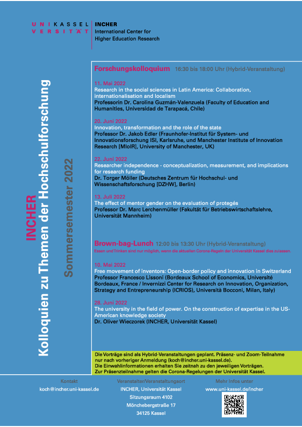 Die Vorträge sind als Hybrid-Veranstaltungen geplant. Präsenz- und Zoom-Teilnahme nur nach vorheriger Anmeldung (koch@incher.uni-kassel.de).