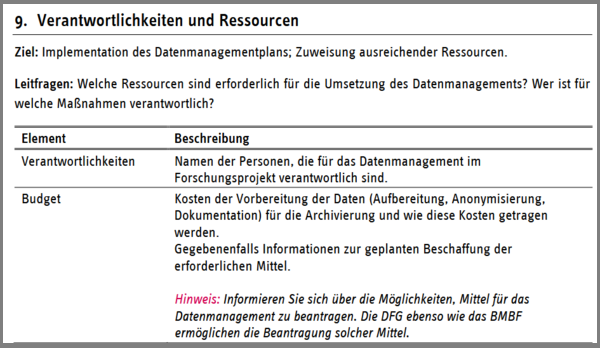 Übung 3: DMP-Fragen am Beispiel VerbundFDB (IX) – Verantwortlichkeiten und Ressourcen