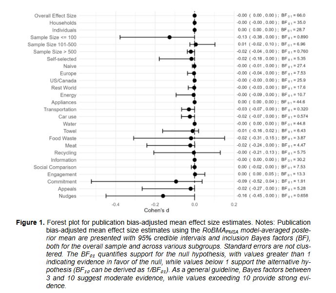 The authors re-analyzed the 144 standardized mean‐difference estimates (Cohen’s d) extracted by Nisa et al. from 91 studies of interventions that aimed to increase pro-environmental behavior. The study has been published as an Institute for Replicationworking paper.