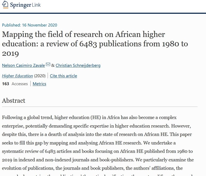 New article on african higher education research by Nelson Zavale and Christian Schneijderberg