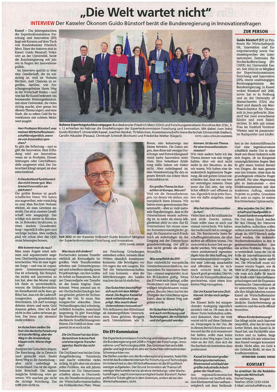 In einem Interview in der Hessisch Niedersächsischen Allgemeine (HNA) vom 9.3.2026 spricht Prof. Dr. Guido Bünstorf über das aktuelle Gutachten der Expertenkommission Innovation und Forschung (EFI), deren Mitglied er ist. Und thematisiert unter anderem, wie Forschungsergebnisse ihren Weg in die Anwendung finden.