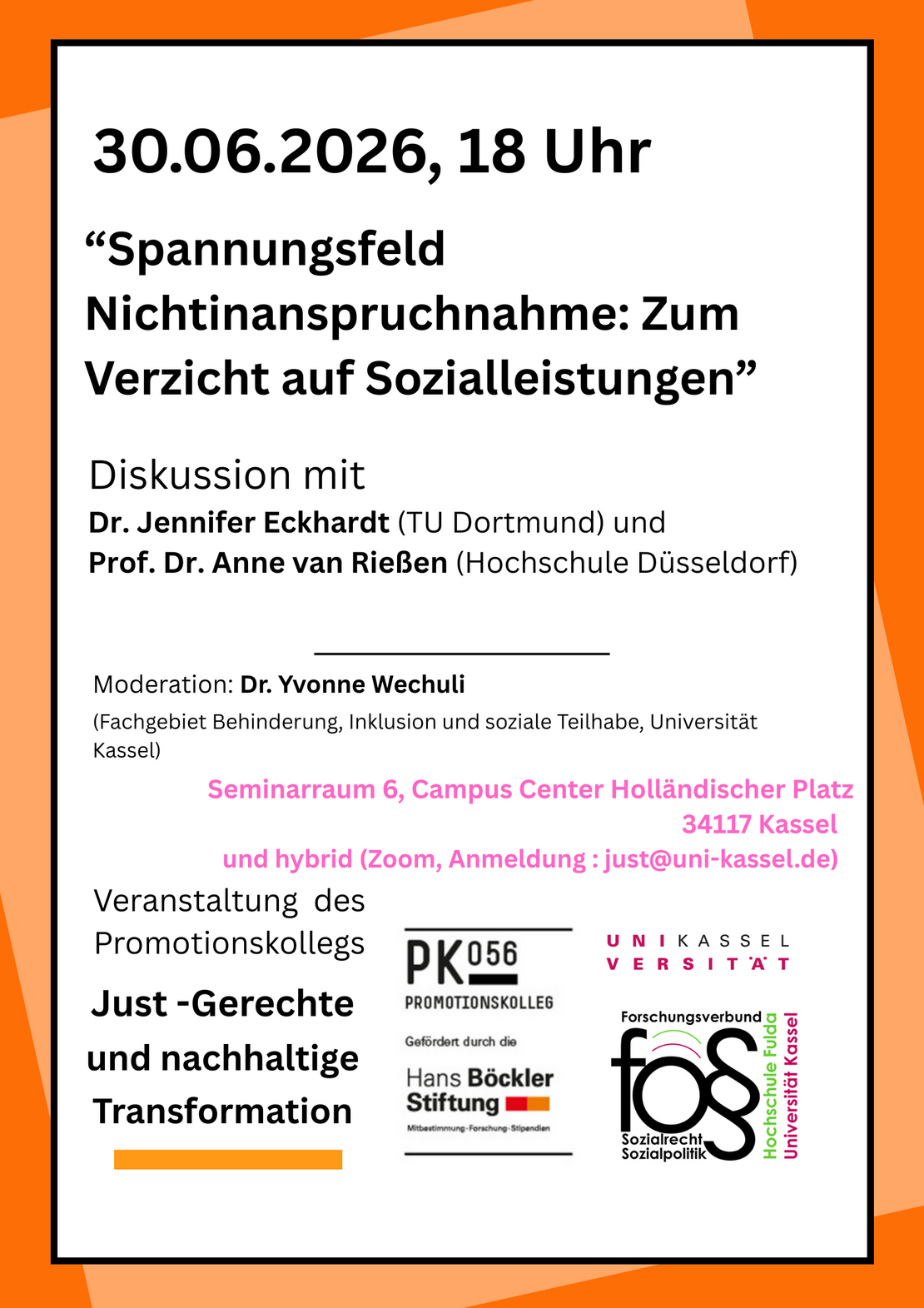 Eine Veranstaltung des Forschungsverbund für Sozialrecht und Sozialpolitik (FoSS) und des Promotionskolleg JUST - Gerechte und Nachhaltige Transformation