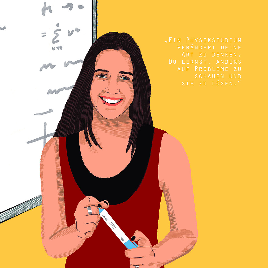 Als Physikerin habe ich viel mehr gelernt als nur Physik. Ein Physikstudium verändert deine Art zu denken. Du lernst, anders auf Probleme zu schauen und sie zu lösen. Physiker*innen sind universelle Problemlöser*innen – auch für Probleme, die mit Physik nichts zu tun haben. Aus diesem Grund stehen Physiker*innen nach dem Studium sehr viele Türen offen.