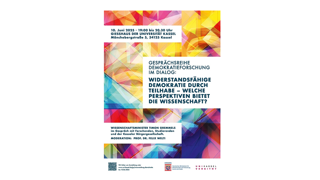 Der Hessische Minister für Wissenschaft für Forschung, Kunst und Kultur hat dazu eine Gesprächsreihe unter dem Titel „Demokratieforschung im Dialog“ intiiert. Die Universität Kassel ist Gastgeberin der Auftaktveranstaltung am 10. Juni 2025.
