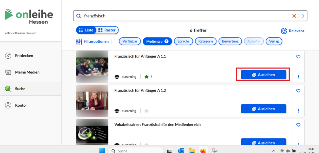 9. In the next step, click “Ausleihen.”