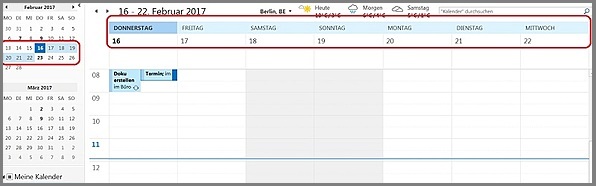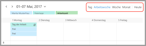 To do this, click on the desired button on the right above the calendar view. With the "Today" button, you can quickly jump back to the current day if you have scrolled through several pages.