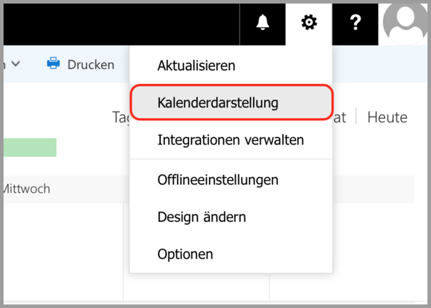 You can use the "Calendar display" option to further customize the display to your needs. Click on the cogwheel button in the black menu bar and select "Calendar display".