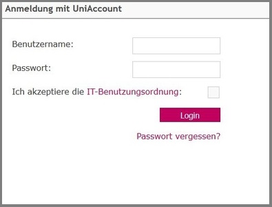 Apply for the shared network drive via Identity Management (IDM). Go to the identity managementand log in with your UniAccount <ukxxxxxx> and the corresponding password. It is necessary to give your consent to the IT user regulations by ticking the appropriate box.