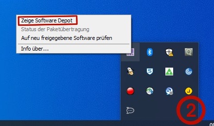 2. Klicken Sie mit Ihrer rechten Maustaste auf das lila Matrix42 Symbol. Nun sollte sich ein kleines Menü öffnen, in dem Sie mit der linken Maustaste auf „Zeige Software Depot“ klicken.