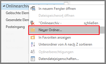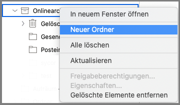 Sie können neue Ordner im Onlinearchiv erstellen, indem Sie mit der rechten Maustaste auf "Onlinearchiv" klicken und dann "Neuer Ordner" auswählen.