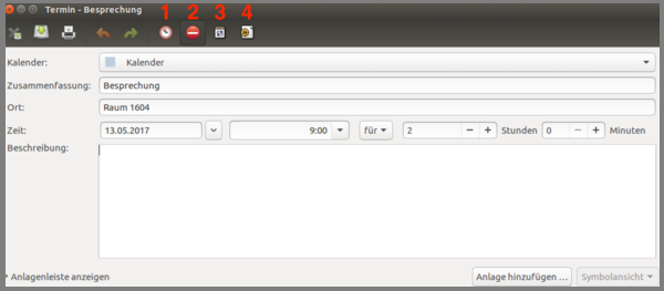 - Anlage hinzufügen: Möchten Sie eine Datei zu Ihrem Termin speichern, können Sie dies hier tun.
