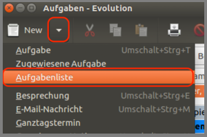 Um eine Aufgabenliste hinzuzufügen, klicken Sie in der schwarzen Menüleiste auf den Pfeil neben der "New"-Schaltfläche und wählen anschließend "Aufgabenliste".