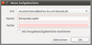 - Liste: Geben Sie hier die Aufgabenliste an in der die Aufgabe gespeichert werden soll.