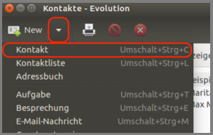 Um einen Kontakt hinzuzufügen, klicken Sie in der schwarzen Menüleiste auf den Pfeil neben der "New"-Schaltfläche und wählen anschließend "Kontakt".