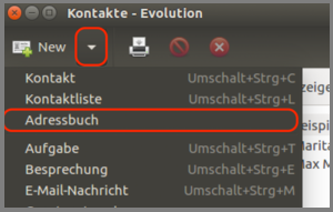 Um ein Adressbuch hinzuzufügen, klicken Sie in der schwarzen Menüleiste auf den Pfeil neben der "New"-Schaltfläche und wählen anschließend "Adressbuch".