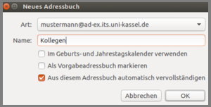 Aus diesem Adressbuch automatisch vervollständigen: Legt fest ob die Kontaktsuche dieses Adressbuch berücksichtigen soll.