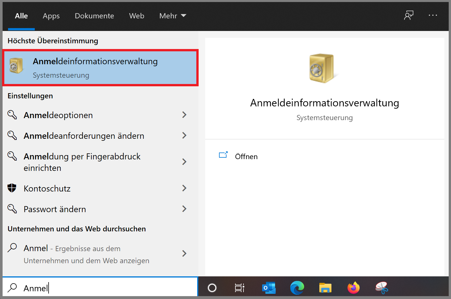 - Öffnen Sie die Systemsteuerung → Benutzerkonten → Anmeldeinformationsverwaltung.