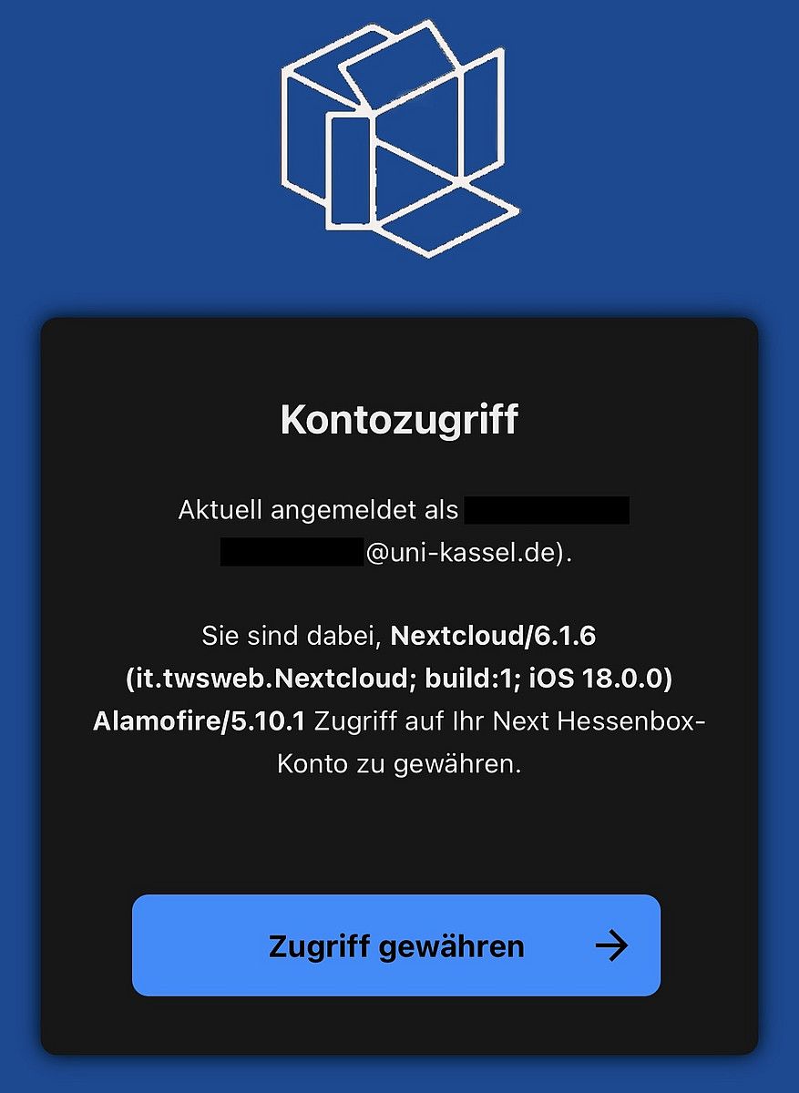 Überprüfen Sie bitte die dargestellten Angaben und wenn alles stimmt, tippen Sie bitte auf "Zugriff gewähren".