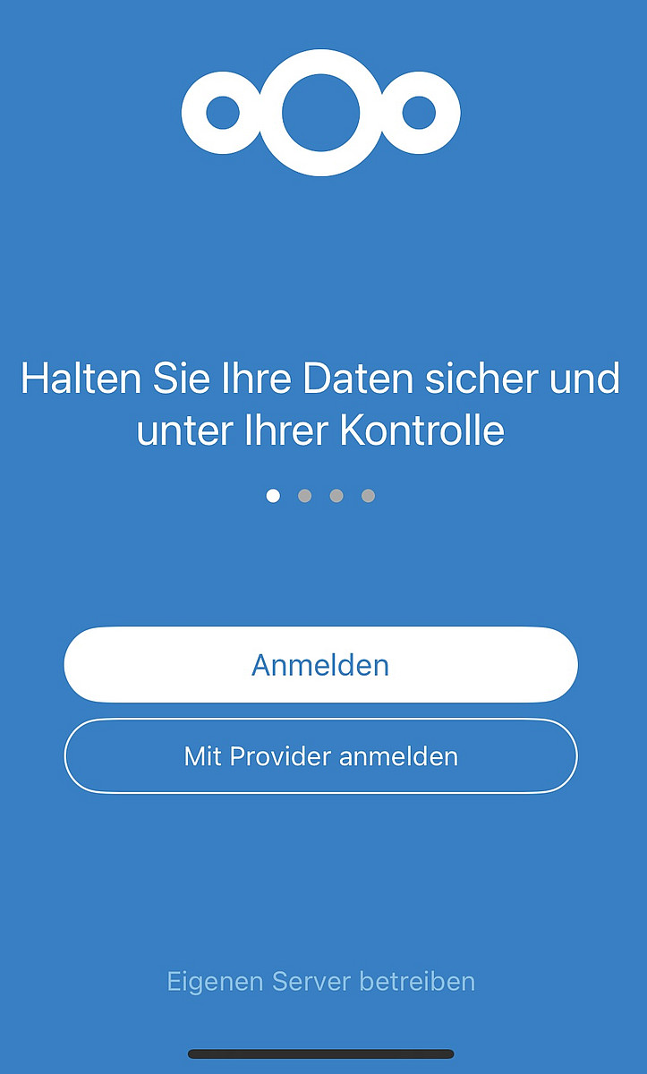 Laden Sie zunächst bitte die Nextcloud App aus dem App Store herunter und installieren Sie diese. Öffnen Sie die App bitte im Anschluss.