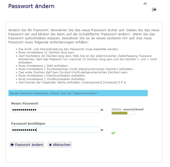 Bei erfolgreicher Registrierung sehen Sie ein Bestätigungsfenster. Anschließend werden Sie aufgefordert, Ihr Kennwort zu ändern.