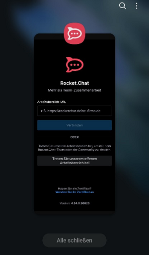Laden Sie sich zunächst die Rocket.Chat App aus dem Play Store herunter und öffnen Sie diese anschließend.