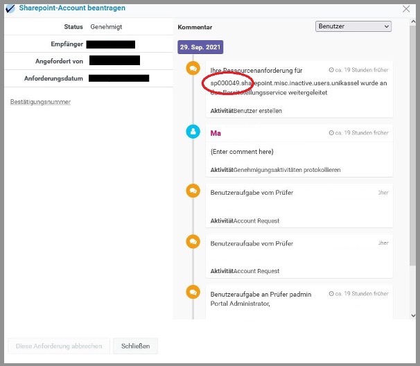 Hier sehen Sie den aktuellen Bearbeitungsstand sowie den neu erstellten externen SharePoint-Account.