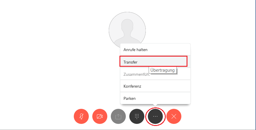 Damit Sie während des Gesprächs, das Telefonat weiterleiten, klicken Sie zunächst auf das <Drei-Punkte-Menü>.
