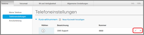 Nach dem Speichervorgang, gelangen Sie auf die Ausgangsposition zurück. Es werden Ihnen die von Ihnen eingegebenen Daten angezeigt. Das Display Ihres Telefons leuchtet und nimmt eine automatische Aktualisierung vor. Möchten an der Kurzwahl noch eine weitere Veränderung vornehmen, dann klicken Sie auf den "Stift". Möchten Sie die Kurzwahl nicht mehr haben, dann auf das "X" klicken. Sie werden nochmals gefragt, ob Sie sicher sind, dass Sie die Kurzwahl löschen möchten, klicken Sie auf ja und die Kurzwahl ist gelöscht.