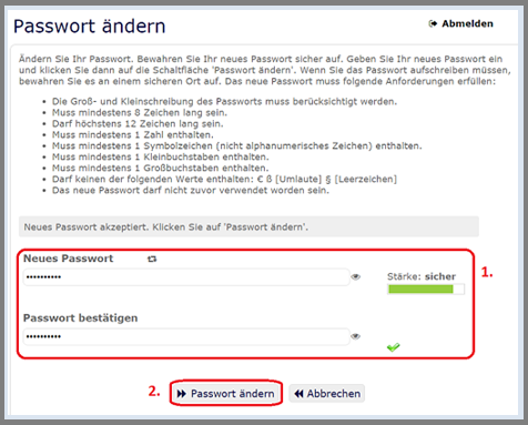 Bevor Sie Ihr Passwort ändern, lesen Sie bitte die Tipps zum Thema Passwortsicherheit.