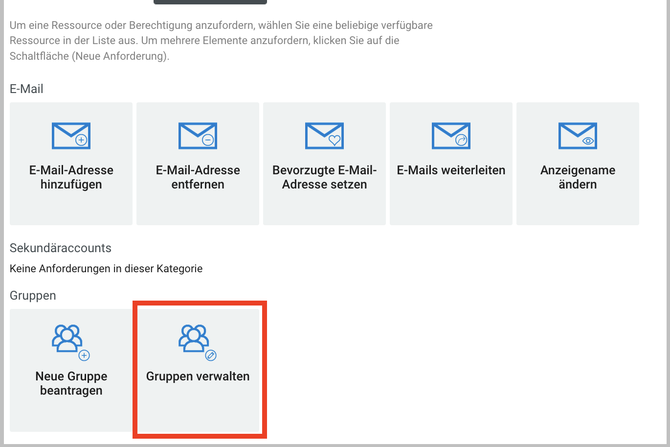 Melden Sie sich mit Ihrem Primäraccount im Identitätsmanagment an und klicken Sie auf "Zugriff anfordern".