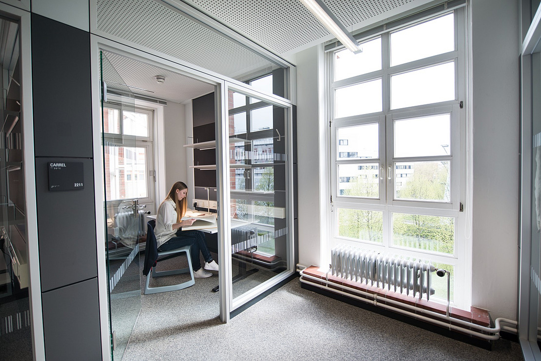 Die Nachfrage nach Lernplätzen in der Bibliothek ist seit Jahren gleichbleibend hoch, Tendenz steigend. Insbesondere die Einzelarbeitsräume in der Campusbibliothek erfreuen sich großer Beliebtheit.