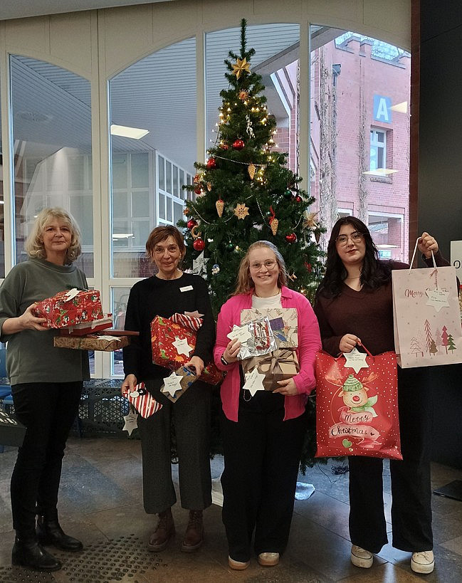 Dank des erstmals durchgeführten Campus-Wunschbaums in der Universitätsbibliothek, einer Kooperation mit dem Allgemeinen Studierendenausschuss (AStA), wurden zahlreiche Kinderwünsche erfüllt. Das gemeinsame Anliegen war es, Familien am Campus in der Vorweihnachtszeit zu unterstützen und Kindern von Studierenden eine kleine Freude zu machen.