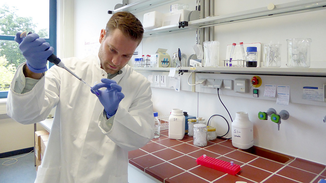 Bild: Eva KrämerMorbus Parkinson ist die häufigste neurodegenerative Krankheit nach Alzheimer. Mindestens 10 Prozent der Parkinson-Fälle haben genetische Ursachen, wie man seit einigen Jahren weiß. Weltweit arbeitet die Wissenschaft intensiv daran, dieser Erkrankung auf den Grund zu gehen und so möglicherweise neue Medikamente zu entwickeln. Auch unsere Arbeitsgruppe um Prof. Dr. Friedrich W. Herberg hat vor wenigen Jahren einen aufsehenerregenden Beitrag geleistet und gewissermaßen einen molekularen Schalter an einem Enzym namens LRRK2 entdeckt, das eine zentrale Rolle für die Entwicklung von Parkinson spielt. Daran möchte ich nun anknüpfen. Das Enzym ist besonders groß und lässt sich in sieben verschiedene, als Domänen bezeichnete Abschnitte aufteilen. Es kommt vor, dass eine Domäne des Enzyms mutiert ist und so Parkinson auslöst, da bestimmte Reizübertragungen in neuronalen Zellen nicht mehr funktionieren.