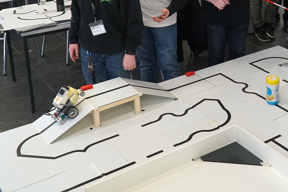 Bild: Uni Kassel.112 Schülerinnen und Schüler aus Kassel Stadt und Land sowie Göttingen versuchen ihre selbst gebauten Roboter so zu programmieren, dass sie autonom einen Parcour durchfahren können. Die eingesetzten Materialien sind dabei völlig frei wählbar. An den Start gehen Konstruktionen aus Fischertechnik und Lego sowie Eigenbau-Roboter auf Grundlage von Arduino oder anderen Mikrocontroller Boards.