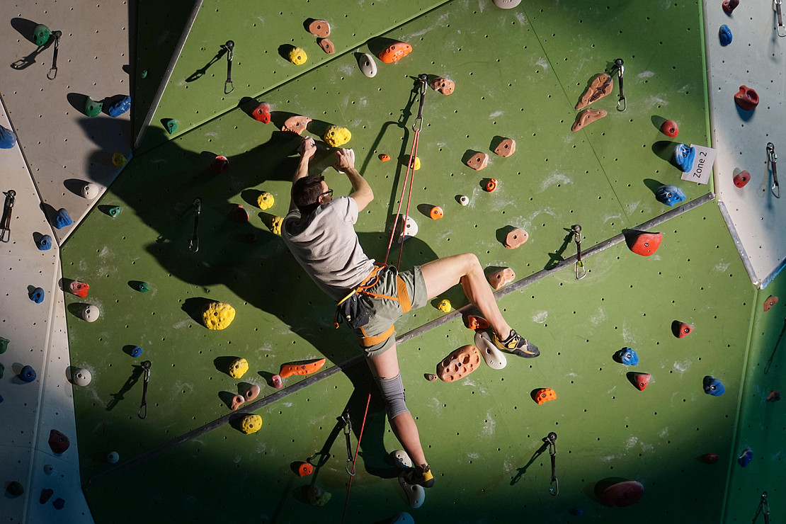 Bild: Florian Schale.Für die Qualifikation wurden aus neun möglichen Versuchen die besten sechs gewertet. Insgesamt gab es 15 Qualifikationsrouten, die je nach Schwierigkeit unterschiedlich bepunktet wurden. Die Teilnehmerinnen und Teilnehmer sicherten sich gegenseitig im Vorstieg in den jeweiligen Routen. Hier konnte Eggenwirth auf dem ersten Platz ins Finale einziehen, in dem bei den Damen und den Herren jeweils acht Teilnehmerinnen bzw. Teilnehmer starteten.