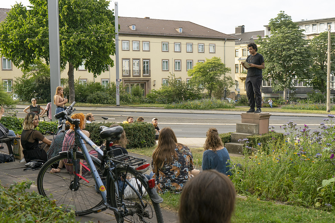 Bild: Max Muselmann.Um Menschen ein Forum zu bieten, hat er im letzten Jahr eine Umfrage gestartet: „Ich habe meine Kommiliton*innen und Freunde dazu aufgerufen, mir mitzuteilen, was ihnen auf dem Herzen liegt“, so Joffe. Er hatte hierbei keineswegs voyeuristische Impulse wie etwa, Geheimnisse über andere auszuplaudern: „Ich wollte für die mir anvertrauten Gedanken, egal ob positiv oder negativ, ein Forum des Zuhörens schaffen, indem ich die anonymisierten Messages als Lecture-Performance im Rahmen des alternativen Rundgangs der Kunsthochschule vorlas“, so der Performer.