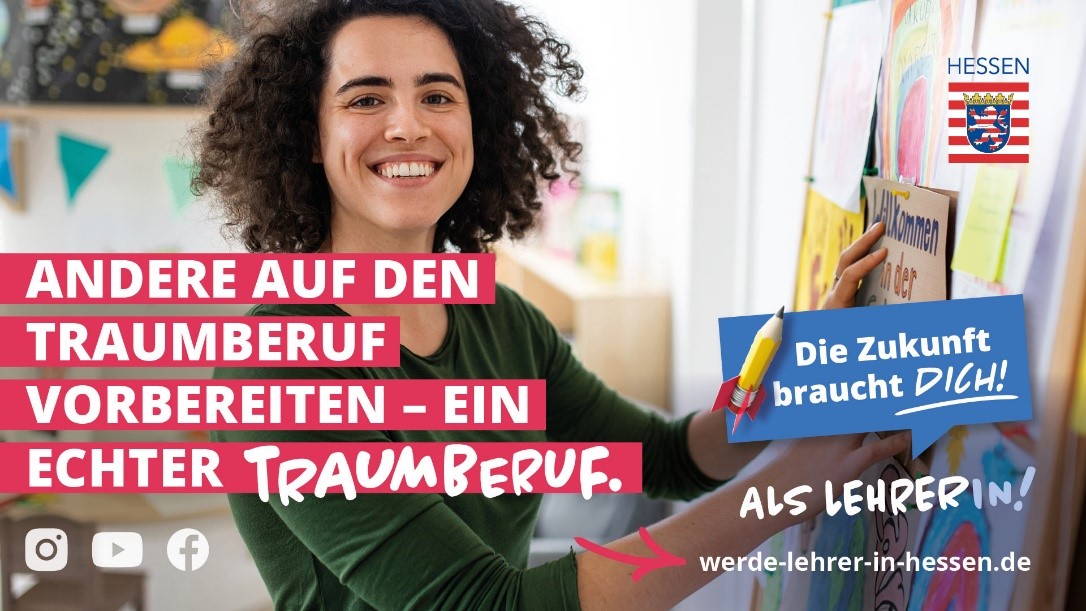 Die Uni Special-Week ist Teil der Kampagne „Die Zukunft braucht DICH“ des Hessischen Kultusministeriums, welche junge Menschen mit verschiedenen Beratungs- und Informationsangeboten für den Lehrerberuf und das Lehramtsstudium in Hessen begeistern soll. Mehr Infos: https://werde-lehrer-in-hessen.de/