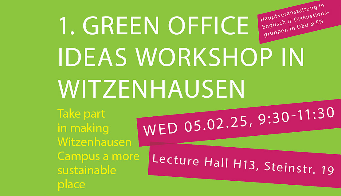 Das Green Office stellt Studierenden und Beschäftigten die aktuellen Aktivitäten zur Nachhaltigkeit an der Uni vor. Anschließend wird es Raum für Brainstorming und Diskussionen über Ideen und mögliche Projekte geben, die dazu beitragen könnten, den Campus Witzenhausen umweltfreundlicher und nachhaltiger zu gestalten. Außerdem wird die digitale Plattform „Projektfabrik“ vorgestellt, auf der Ideen ausgetauscht, diskutiert und vorangebracht werden können.