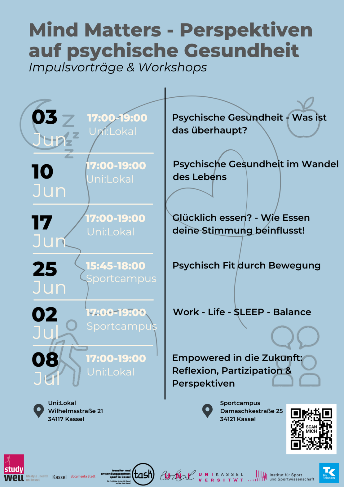 Weitere Informationen: https://www.uni-kassel.de/einrichtung/task/mind-matters-veranstaltungen-zu-psychischer-gesundheit.html