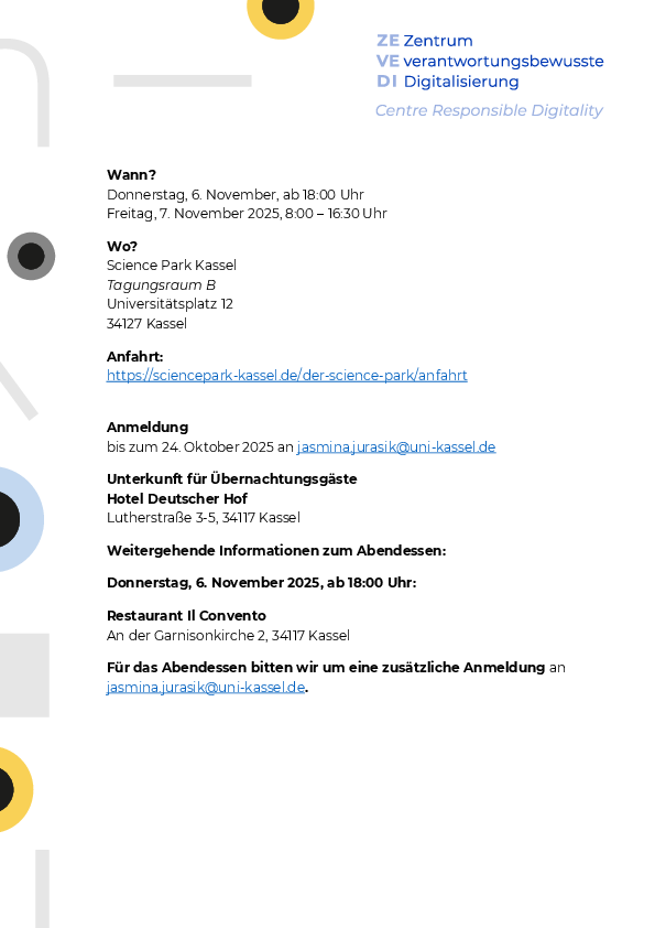 Diese Website verwendet ausschließlich technisch notwendige Cookies. Für die Nutzungsanalyse mit der Software Matomo setzen wir keine Cookies ein. Die Analyse erfolgt anonymisiert und erlaubt keine Rückschlüsse auf einzelne Besucher*innen. Cookies von Drittanbietern werden nur nach ausdrücklicher Zustimmung gesetzt. Weitere Informationen hierzu finden Sie in unseren Datenschutzhinweisen.