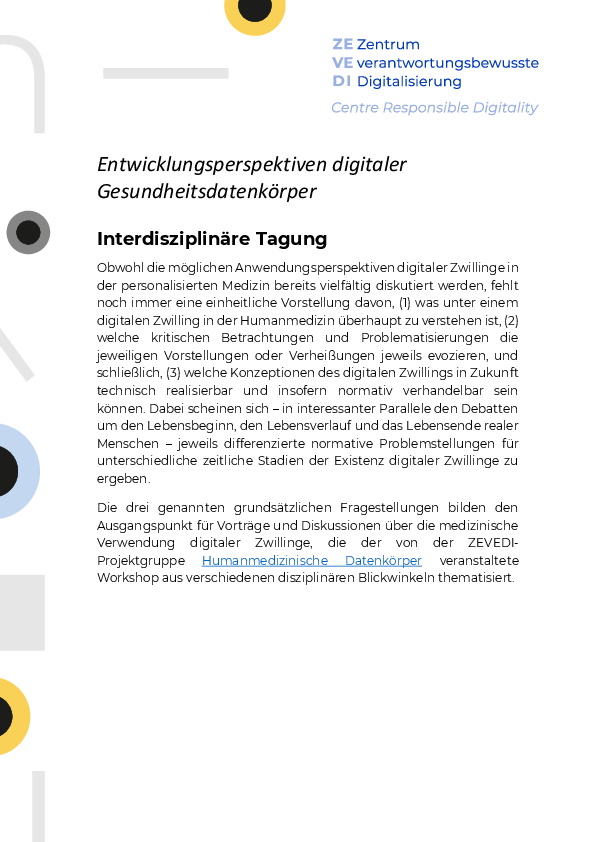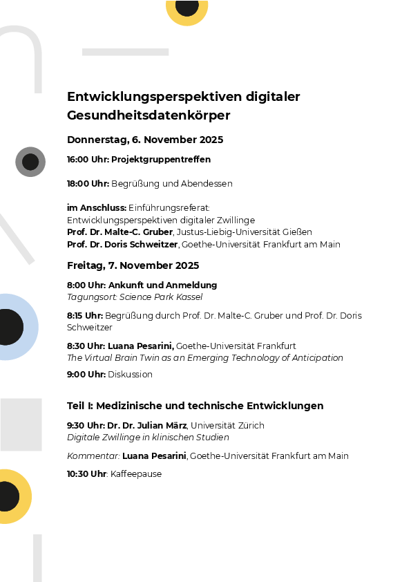 Interdisziplinäre Tagung: Entwicklungsperspektiven digitaler Gesundheitsdatenkörper vom 6.-7. November 2025