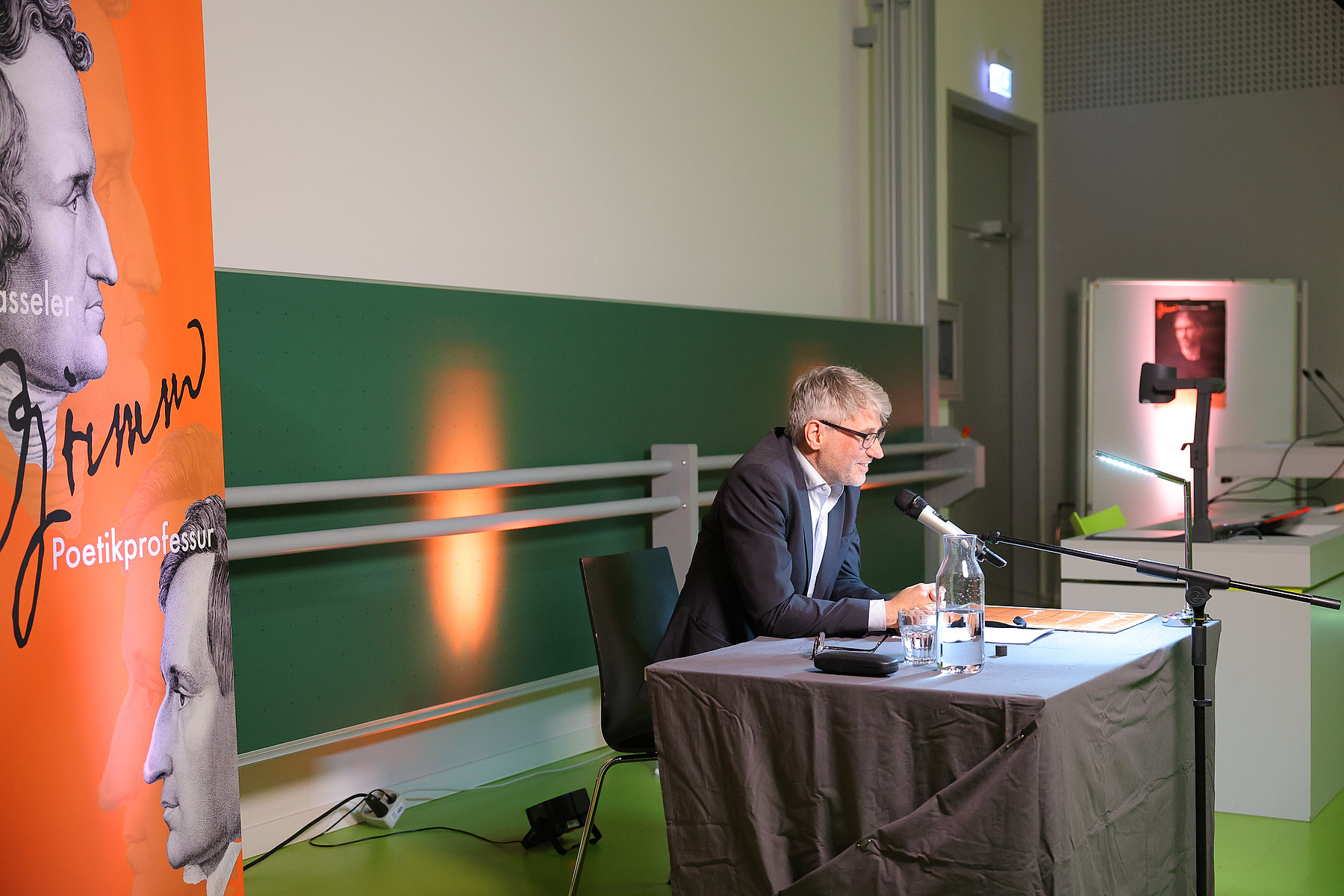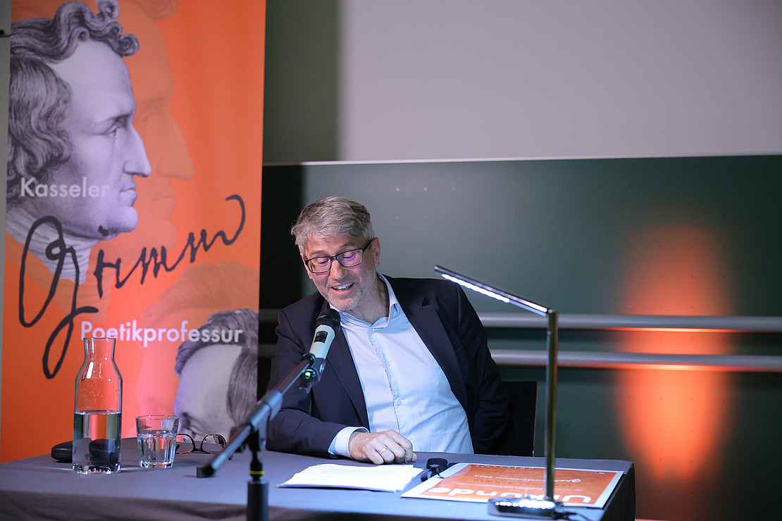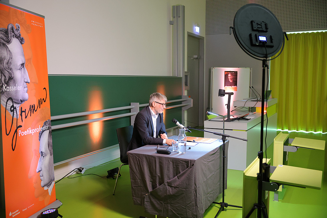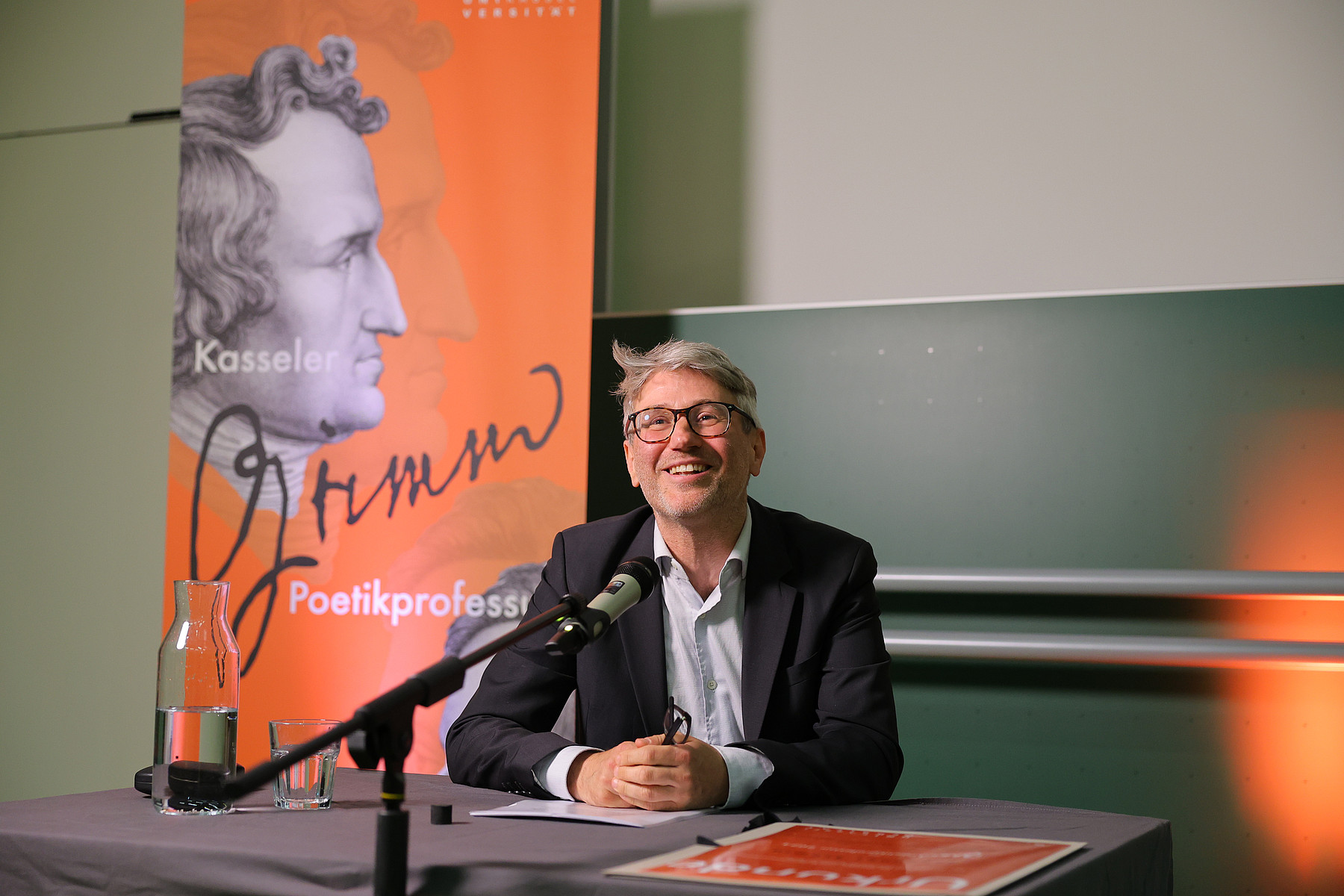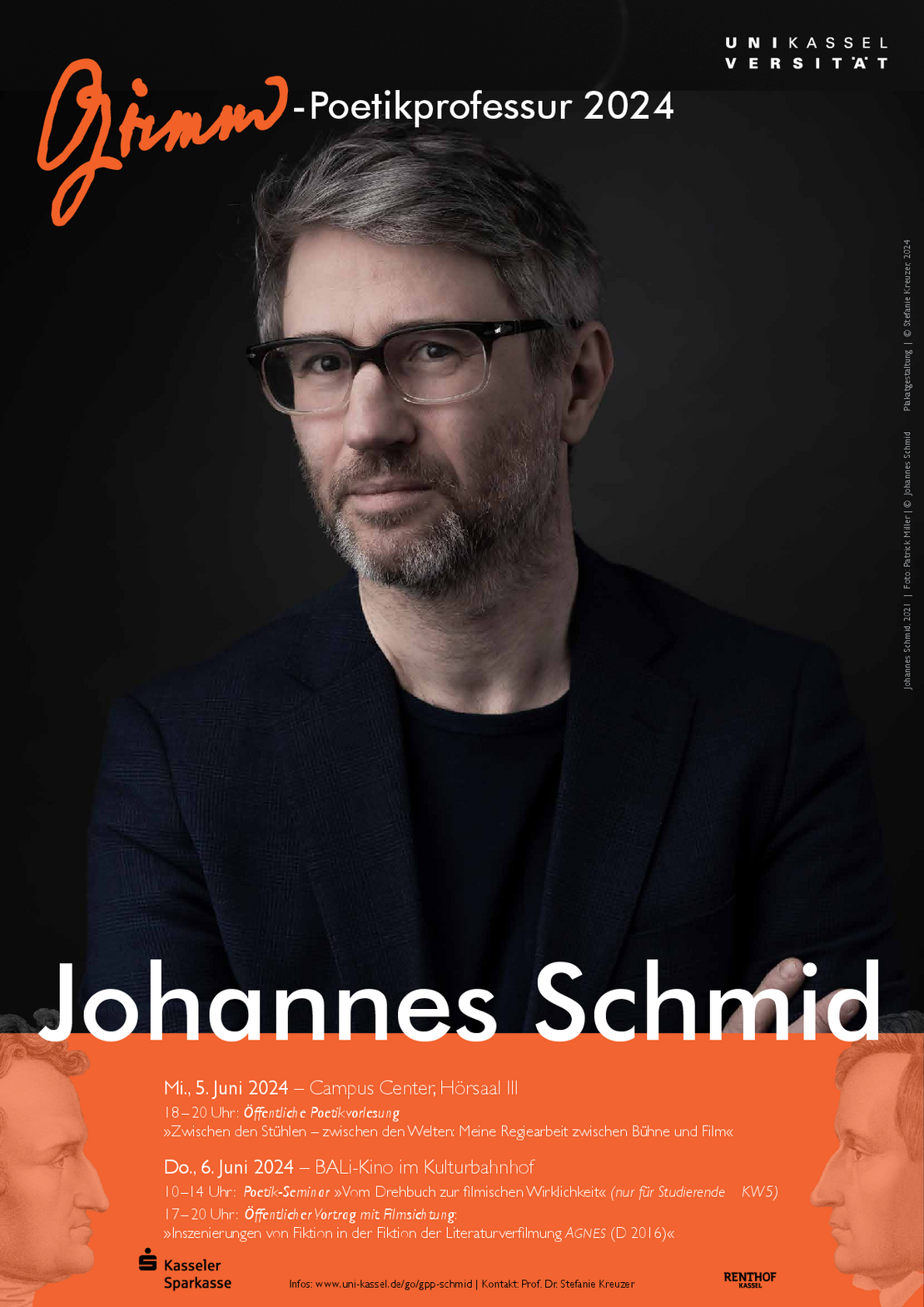 The German film and theater director Johannes Schmid (* 1973) was honored as Grimm Poetics Professor at the University of Kassel in 2024(www.johannesschmid.com). As part of his guest professorship (inaugural lecture, poetics seminar, lecture with film viewing), he gave 'workshop' insights into his directorial work in Kassel at the beginning of June.
